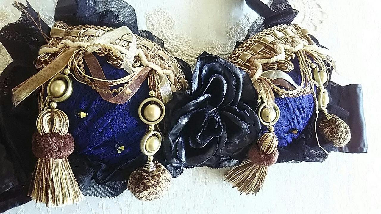 ブラックローズ、タッセル、胸元レース、アクセントにゴールドのスワロビーズがついています。