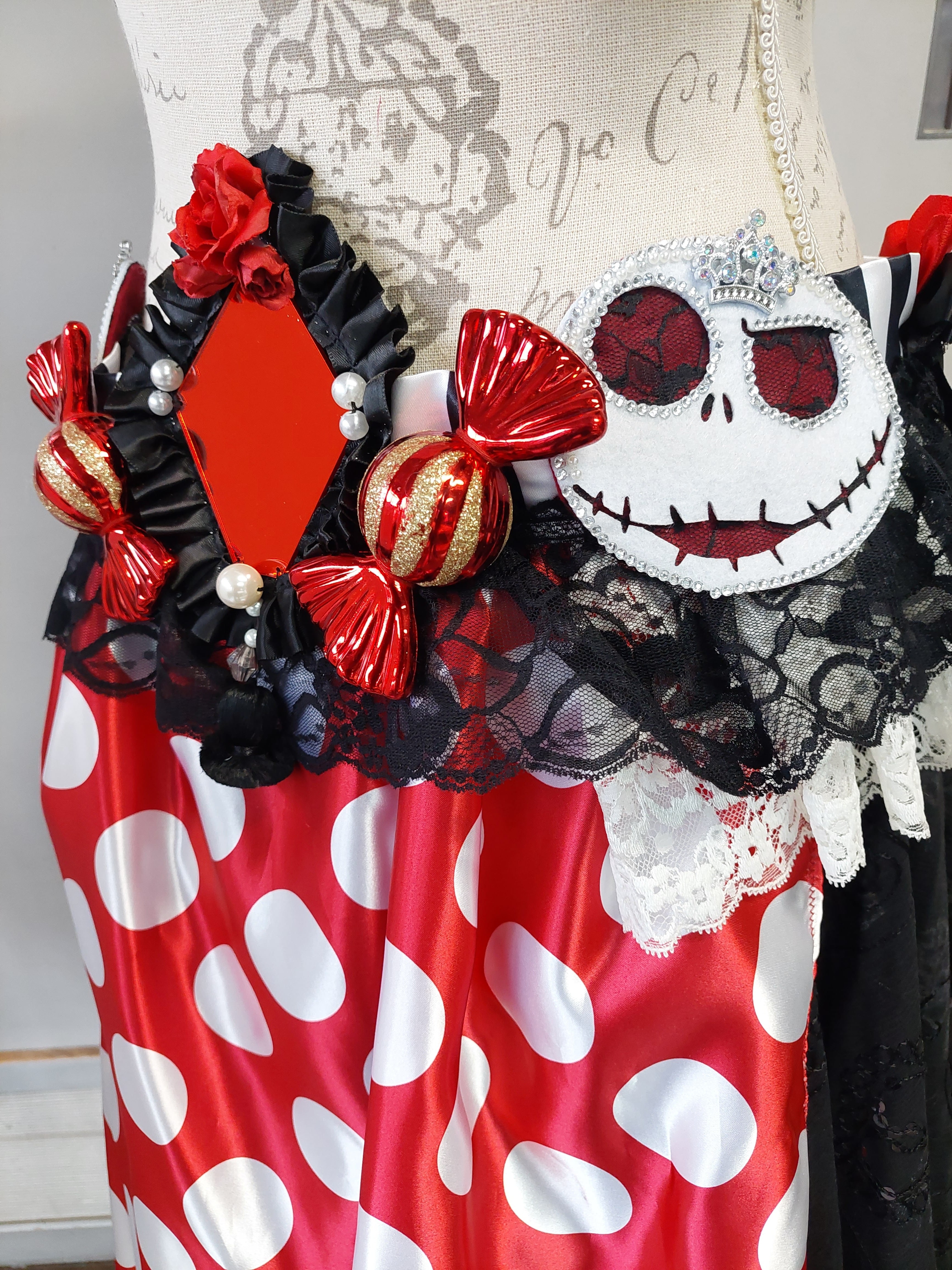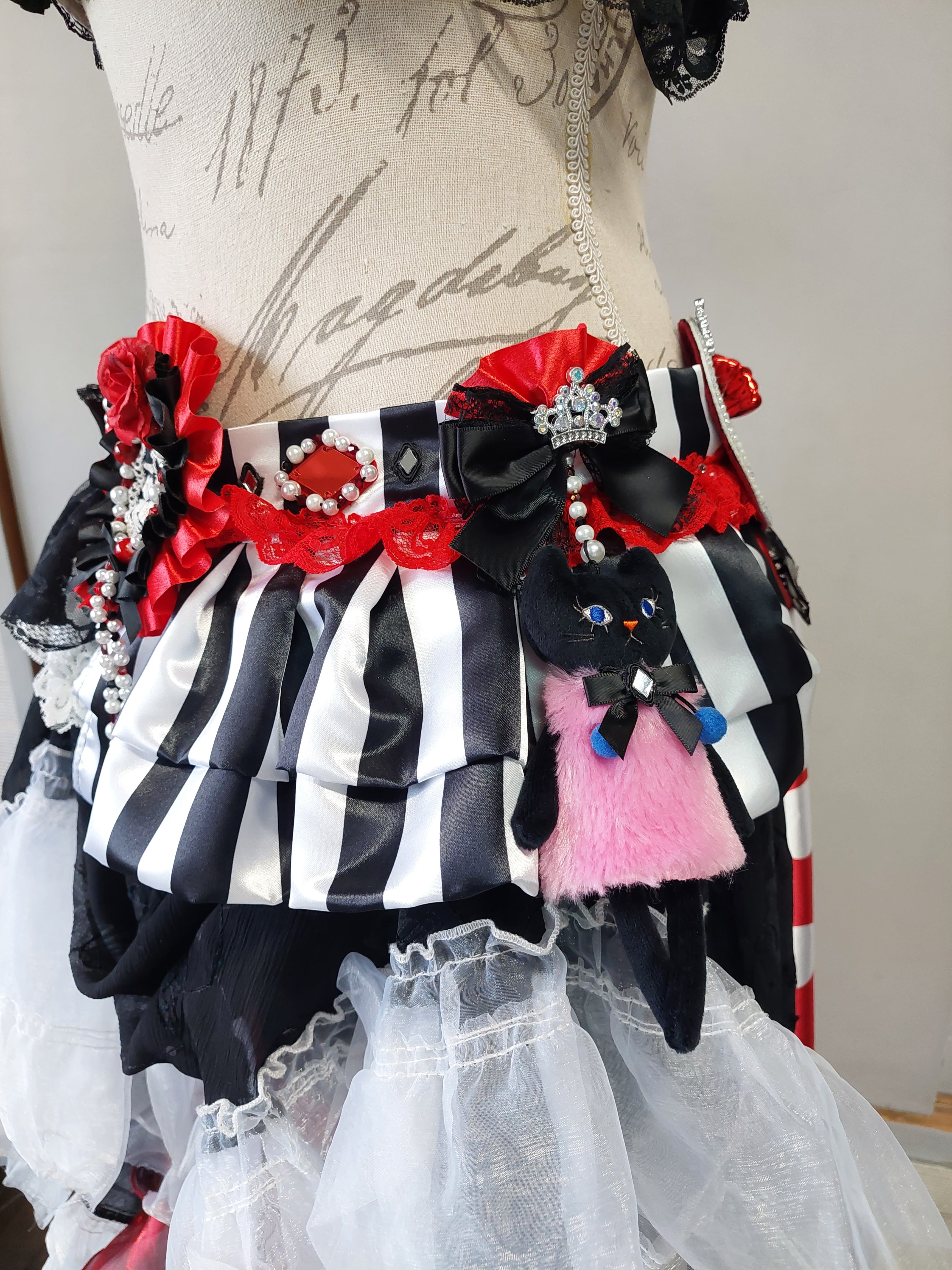 サーカスの住人になったような、不思議の国のアリス、トランプ、ハロウィンなどの要素が合わさった大きなモチーフが目を惹く衣装です。
