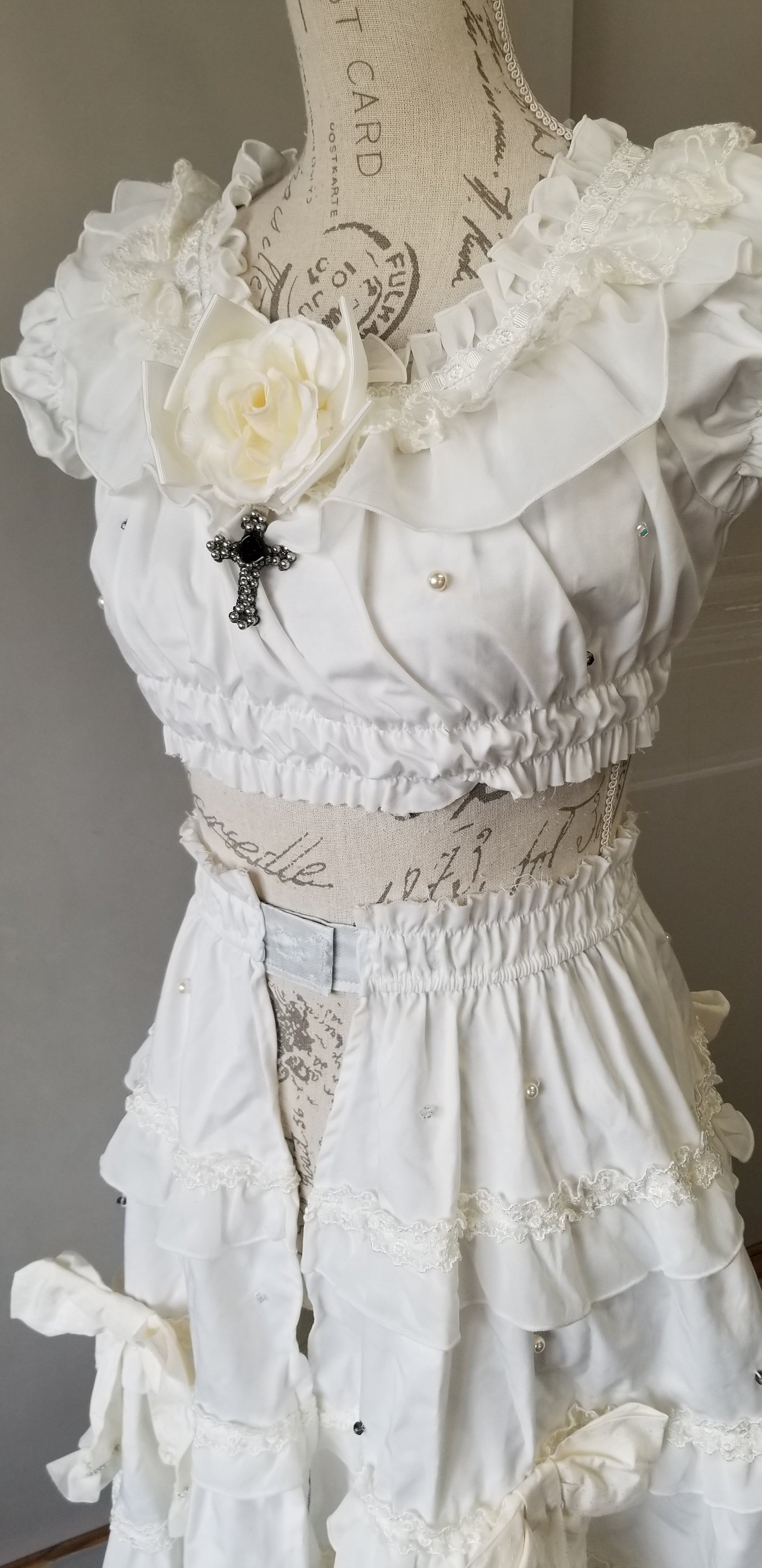 ゴスロリ衣装を解体しリボンなど追加しリメイクしたホワイトフリルゴス†◆†